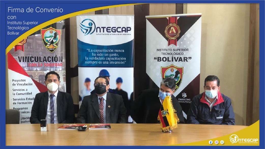 Integcap Capacitaciones Integrales de Ingeniería trabajando en conjunto con las mejores Instituciones de Educación Superior del Ecuador Firma de convenio con el Instituto Tecnológico Superior "Bolívar" Integcap Ingeniería comprometidos por trabajar en beneficio de los estudiantes y profesionales del Ecuador.